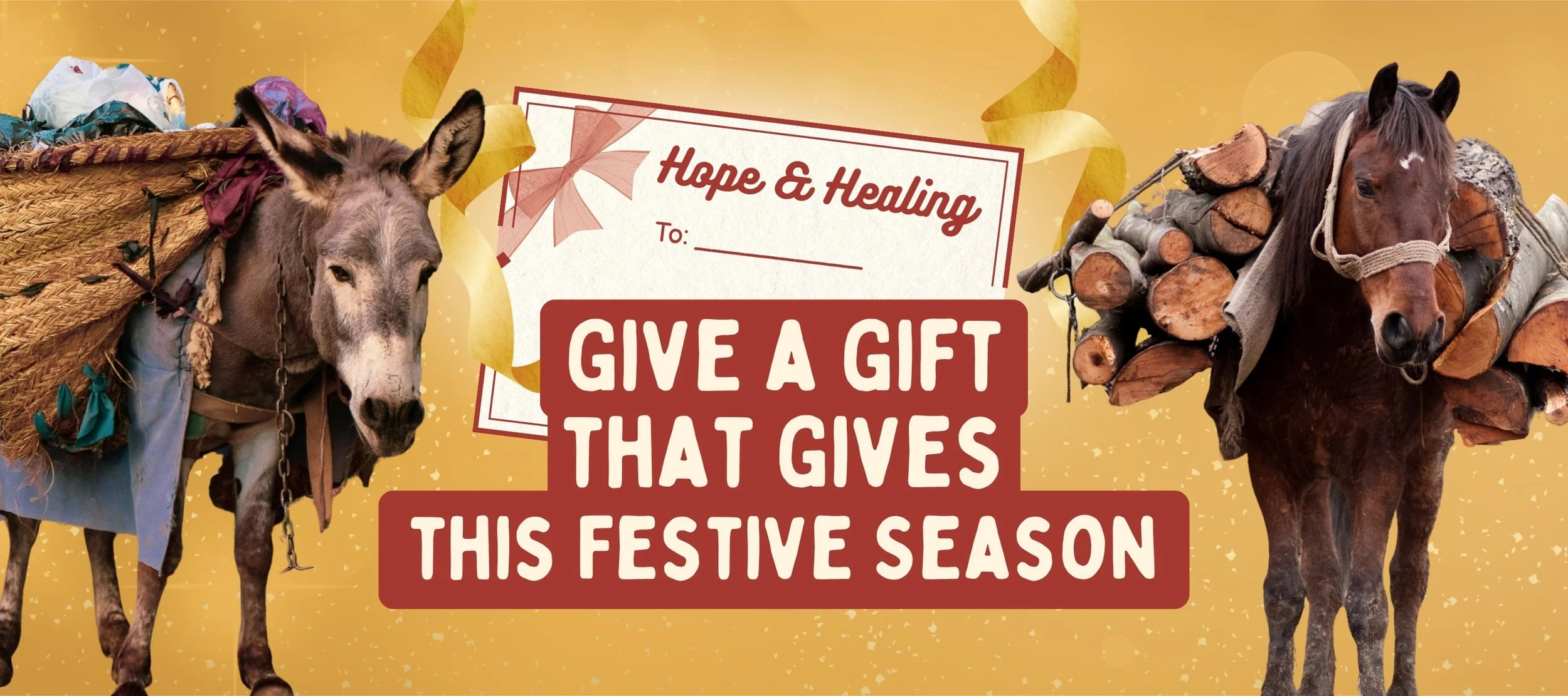 Pick from a variety of plush animals, each representing the animals you’re helping. We also have caps, tote bags or meaningful gift cards. Every purchase directly funds vital care and protection for working animals.