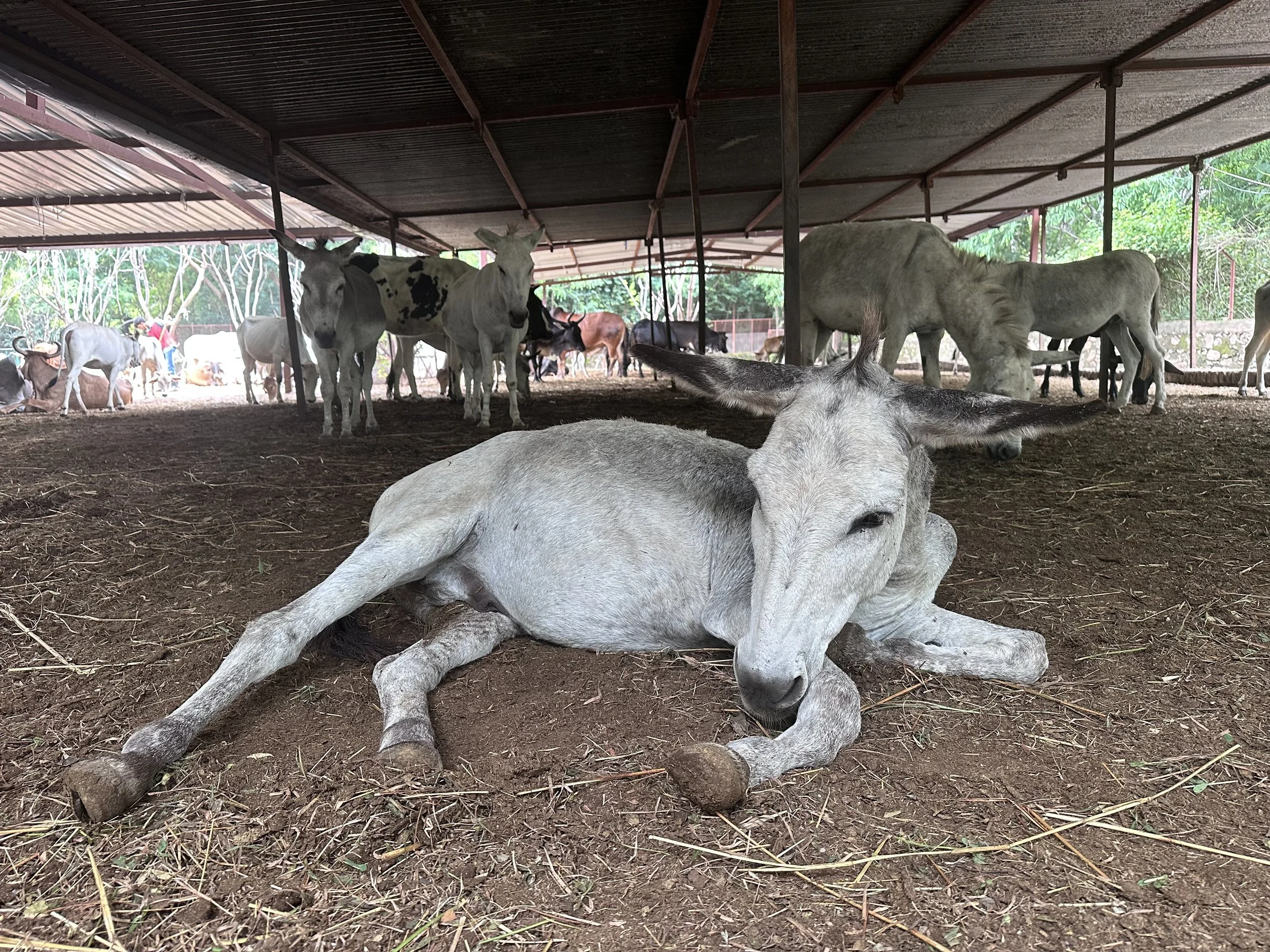 AAU recently built a new spacious and comfortable barn for the rescued donkeys. Their previous shelter was a simple tin roof in a fenced area and had been deteriorating for a while. The new barn provides plenty of room and protection from the elements.