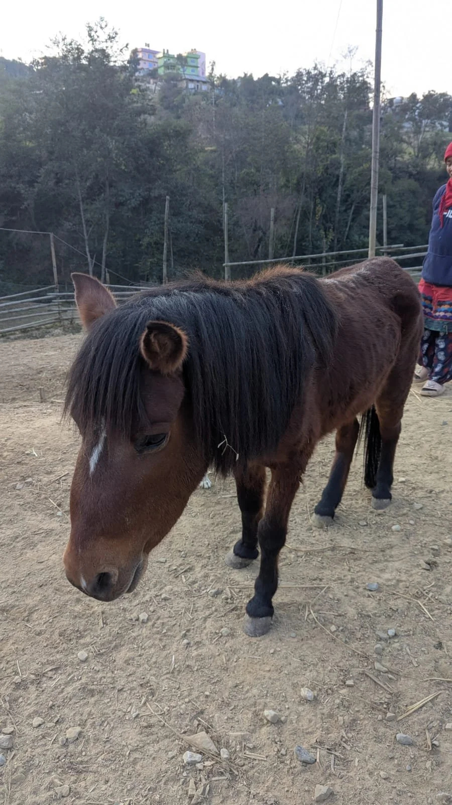 Shakti came to the sanctuary as a foal back in 2010, along with her mum, Mukti. Both had been rescued from a brick kiln in Lalitpur. Mukti passed away soon after she arrived, as she had multiple health complications. In her 15 years with us, Shakti thrived and was loved by all. She had a really sweet, gentle nature. Because of her calm and trusting personality, Shakti played a special role in our educational work. Over the years, she participated in many teaching sessions for interns, thereby helping future veterinarians in Nepal learn about equine health, handling, and welfare. We miss her immensely but also feel so thankful that most of her life was spent in comfort and without suffering.