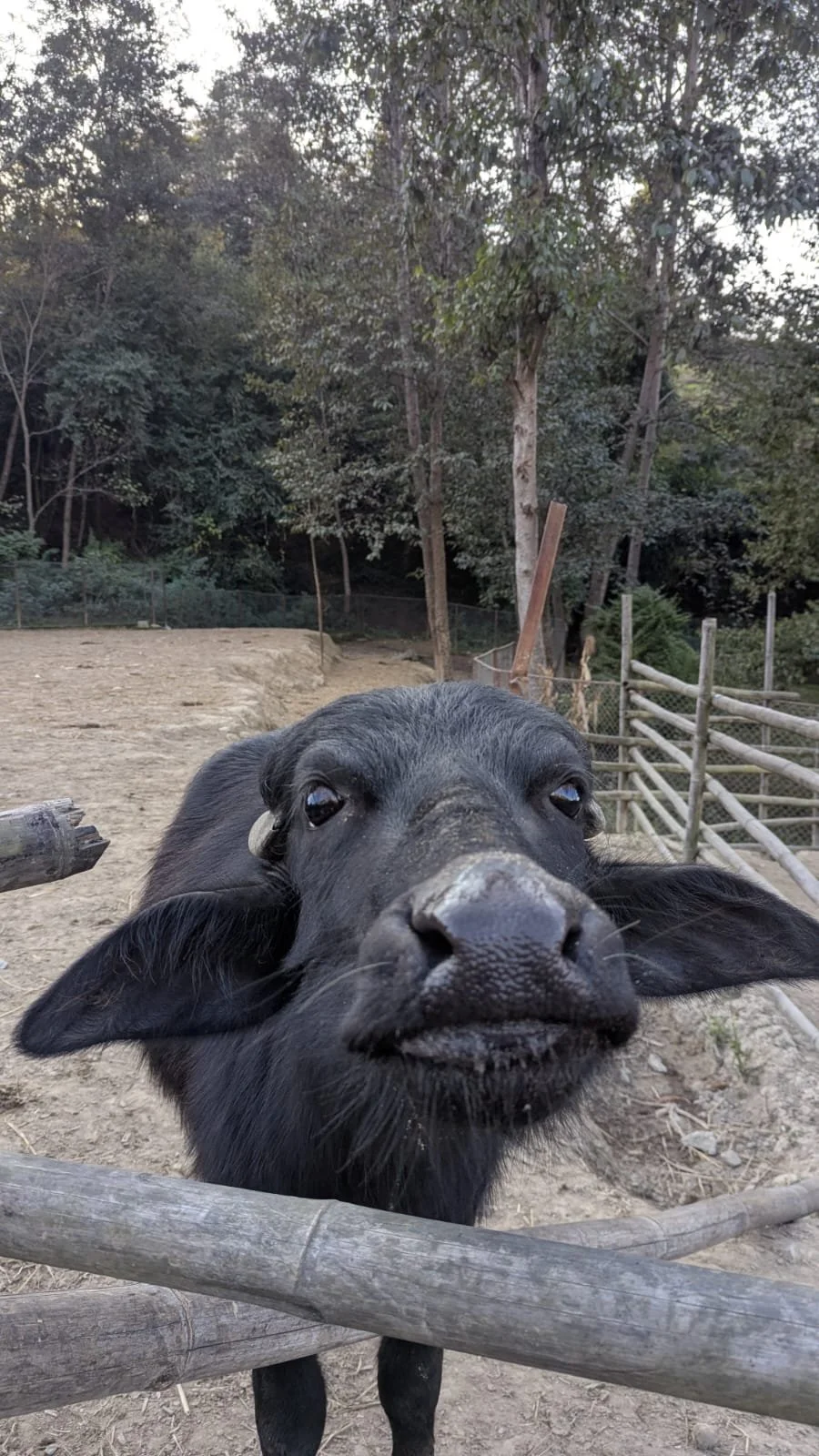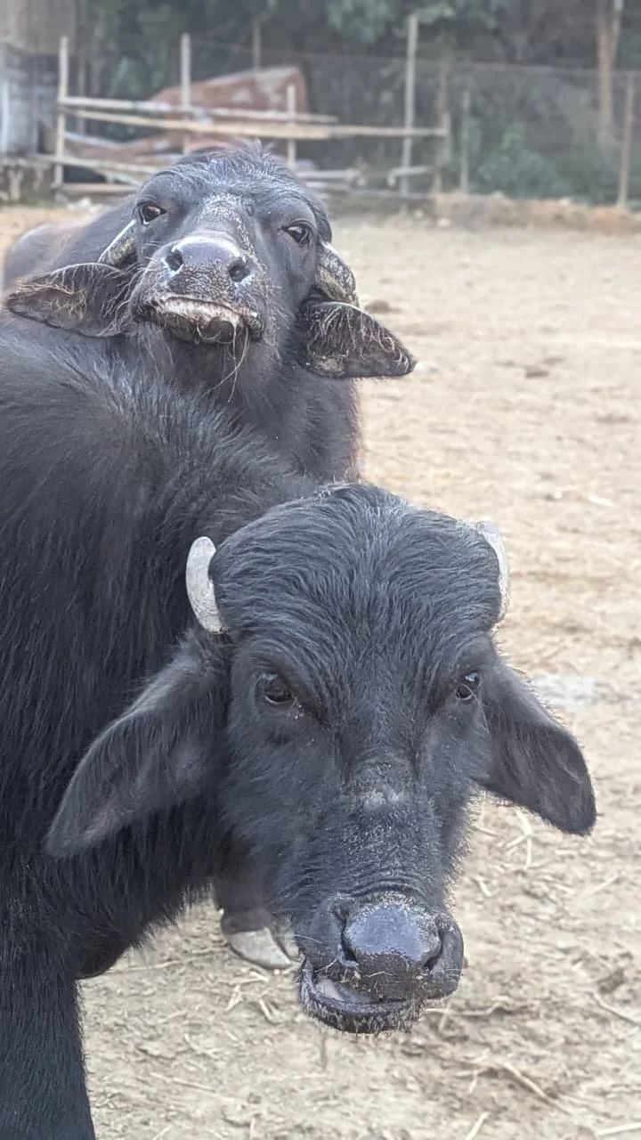 Our bulls, Kumari and Prawin, and buffaloes, Lakshmi and Aashu, are growing into giants, but they are averse to conflict so they are literally gentle giants! Lakshmi is quite wary of humans but she tends to like all the other animals.