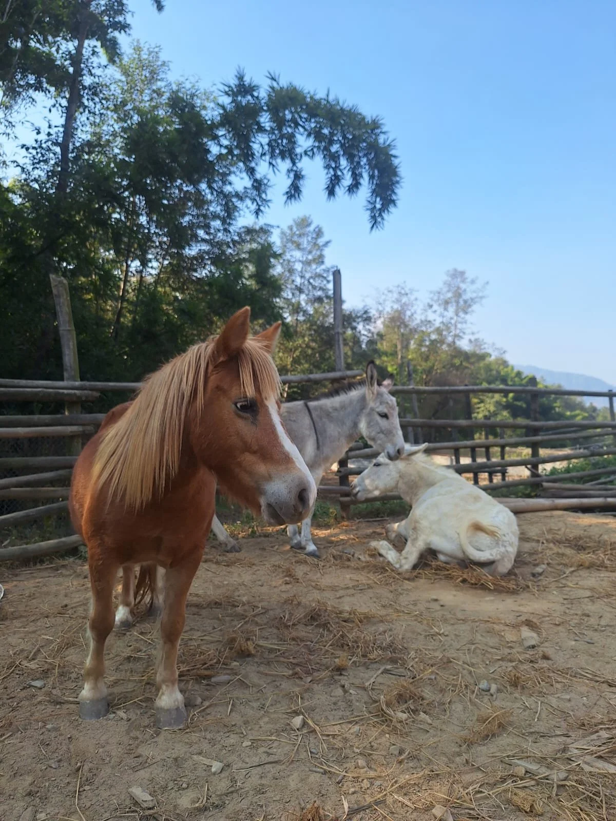 Markhu, our senior horse, is also going okay. Though his mobility remains limited due to his old tendonitis injury, he spends his days peacefully resting and sunbathing — two of his favourite activities. He continues to eat and drink reliably, and our caretakers ensure he receives all the support he needs to stay comfortable through the cooler weather.