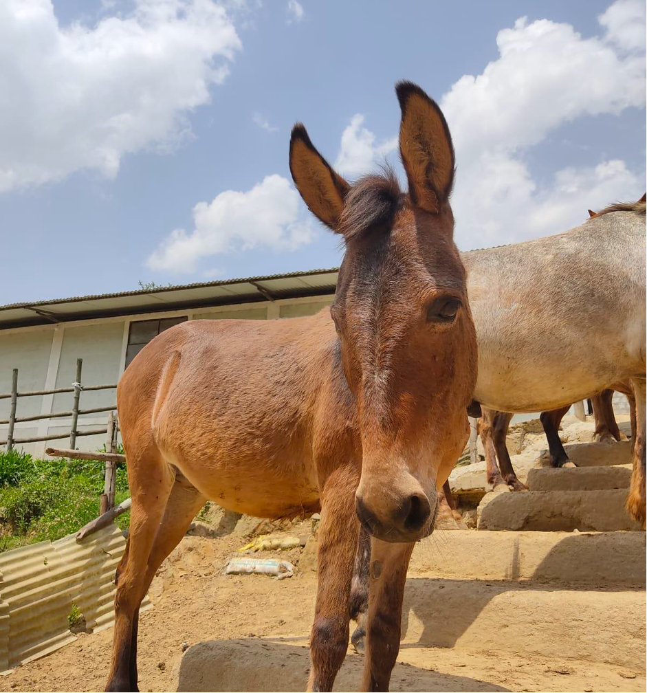 Jackie is a male mule who was rescued from a brick kiln in 2019. Jackie has an old fracture on his right hind leg and he was being put to work carrying bricks despite his injury, which was causing him considerable pain and discomfort. Initially, the owner was not willing to give up Jackie, as they pay a lot of money for working animals, but after much persuasion, he agreed.
