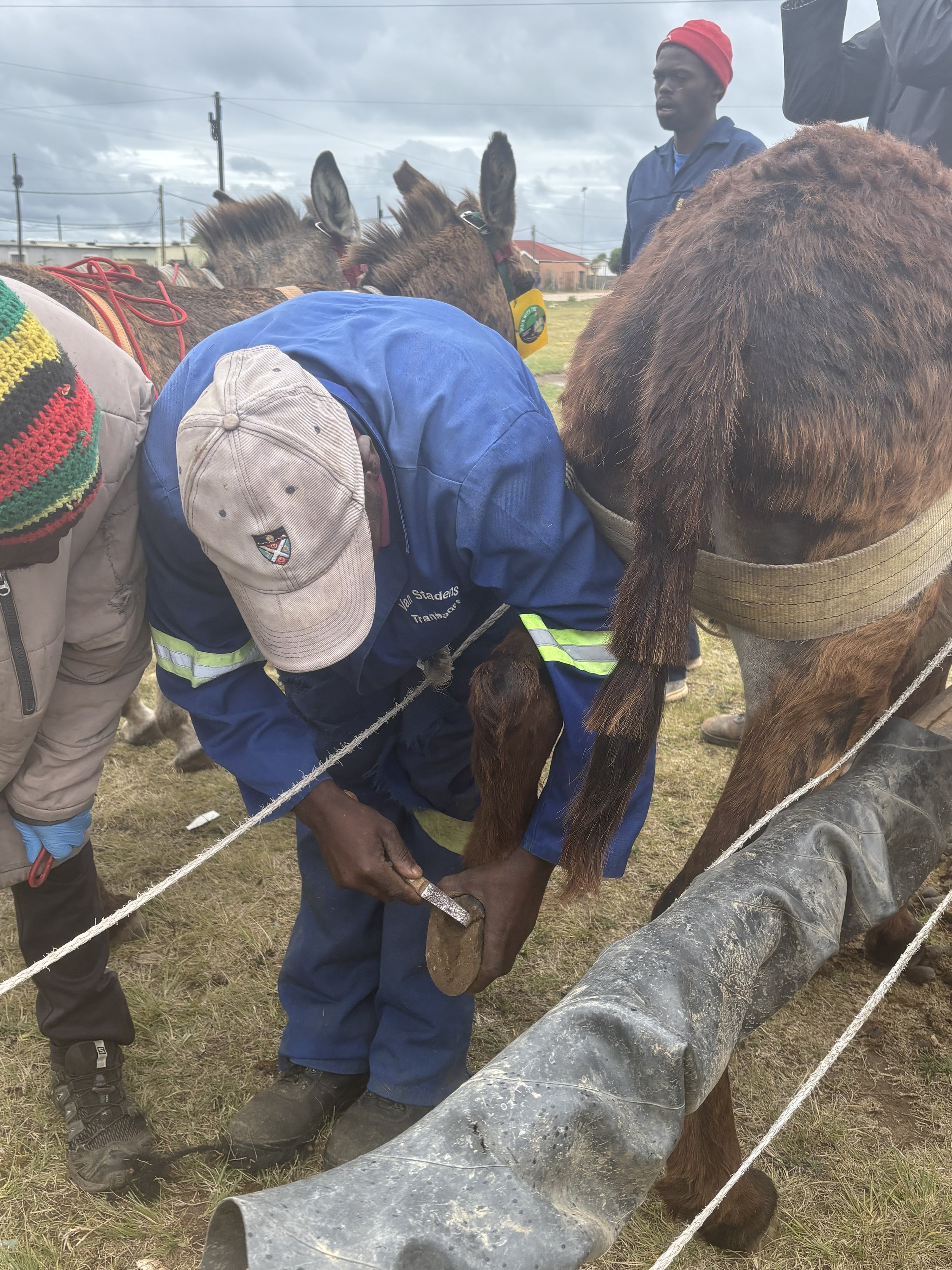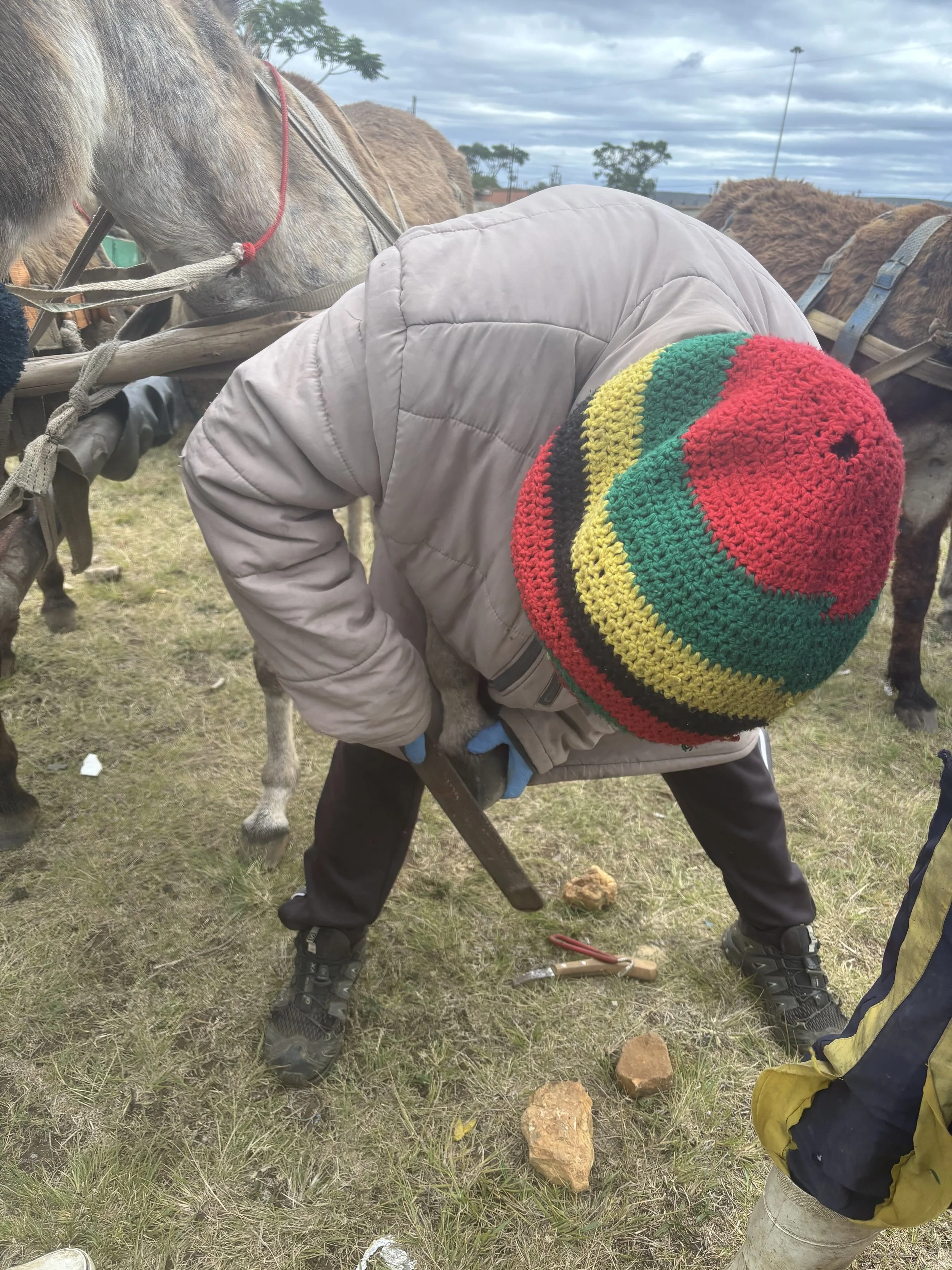 A set of farrier tools were left with Michael, who is our community liaison person and will be running a Donkey Care Station in 2026. He was very excited and got to work immediately checking and trimming hooves!