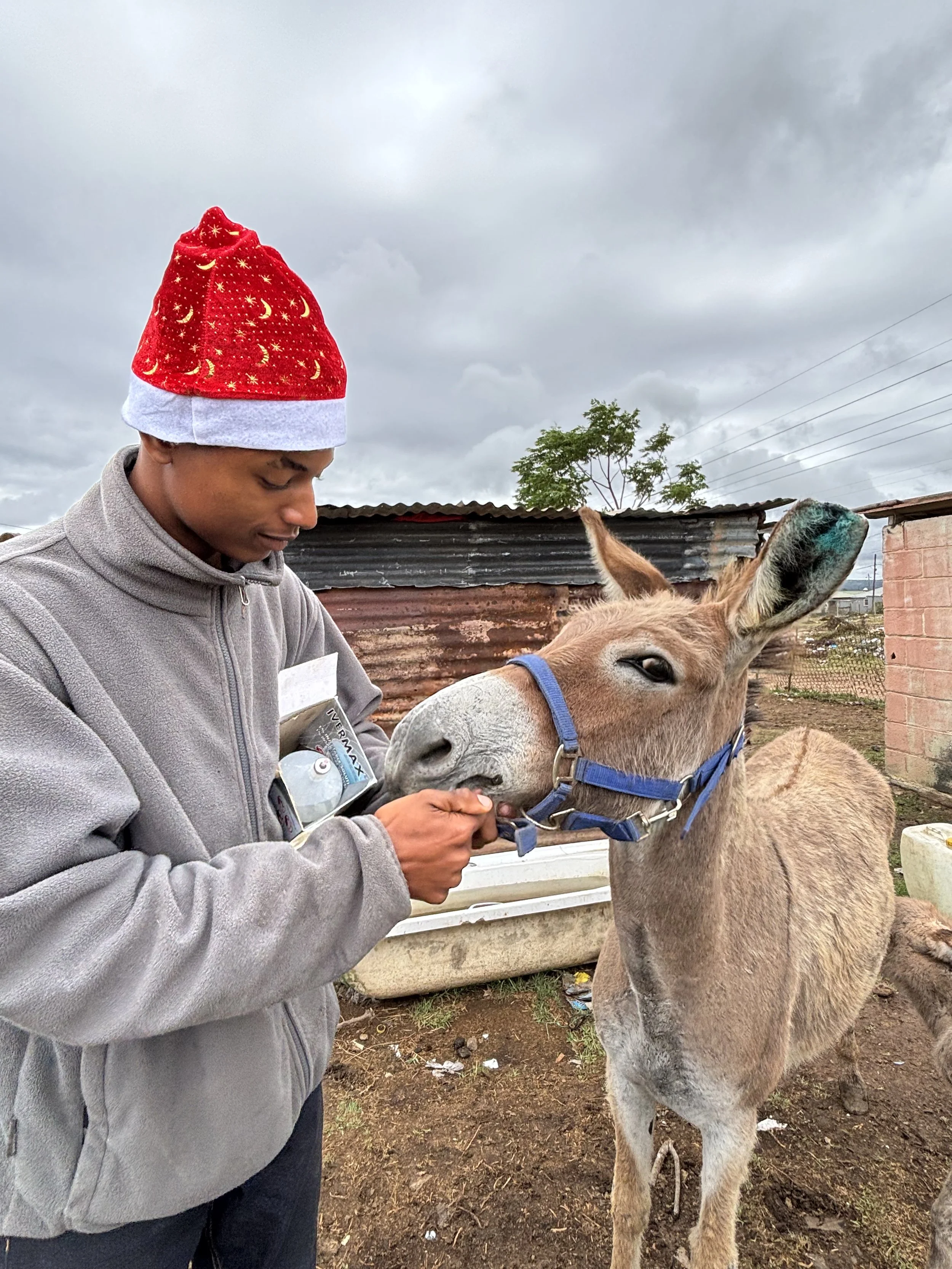 2025 ended on a high note with Christmas festivities, despite the day being unusually cold for December! Because it was school holidays there were plenty of the donkey owners’ children there too.