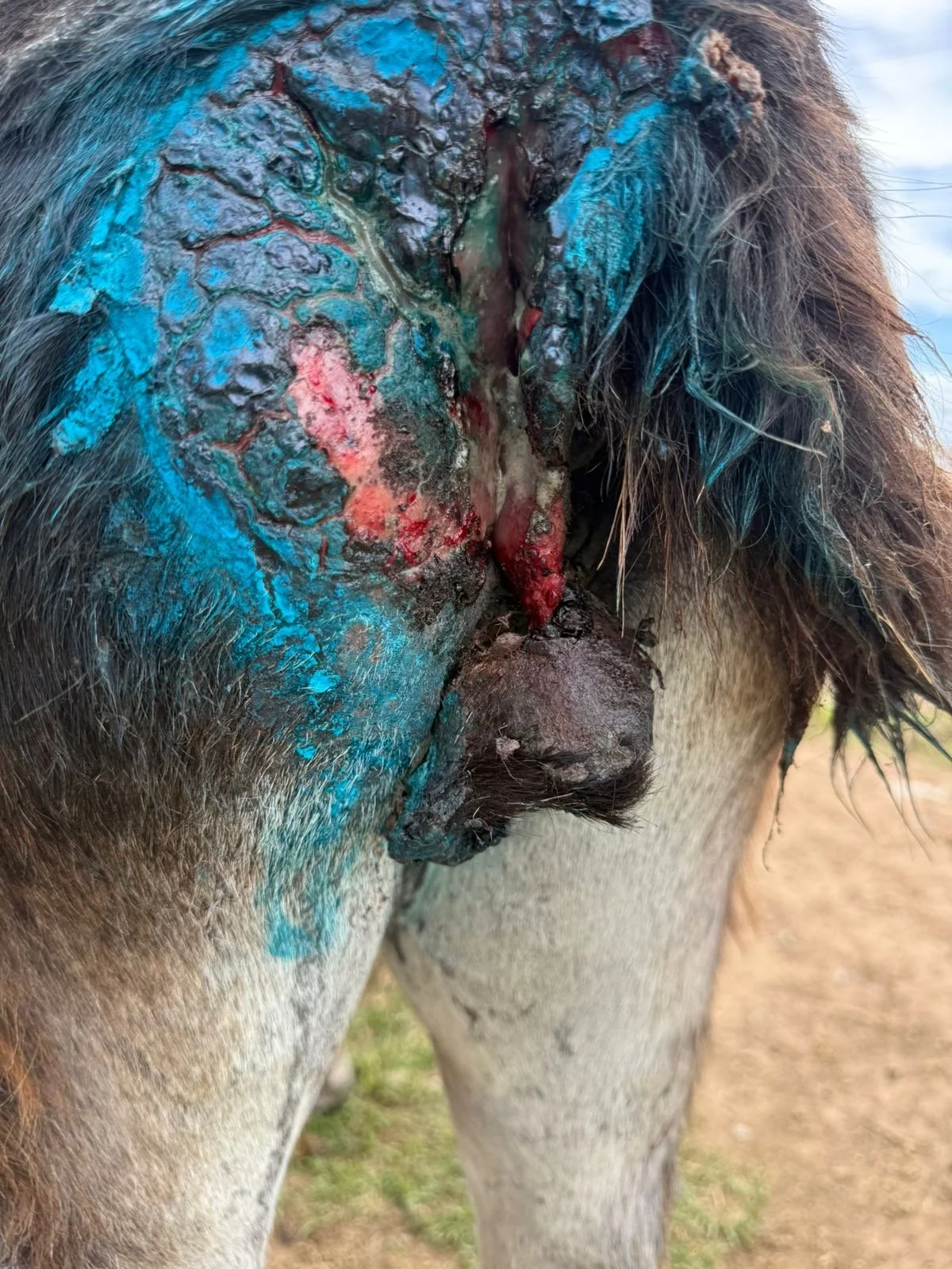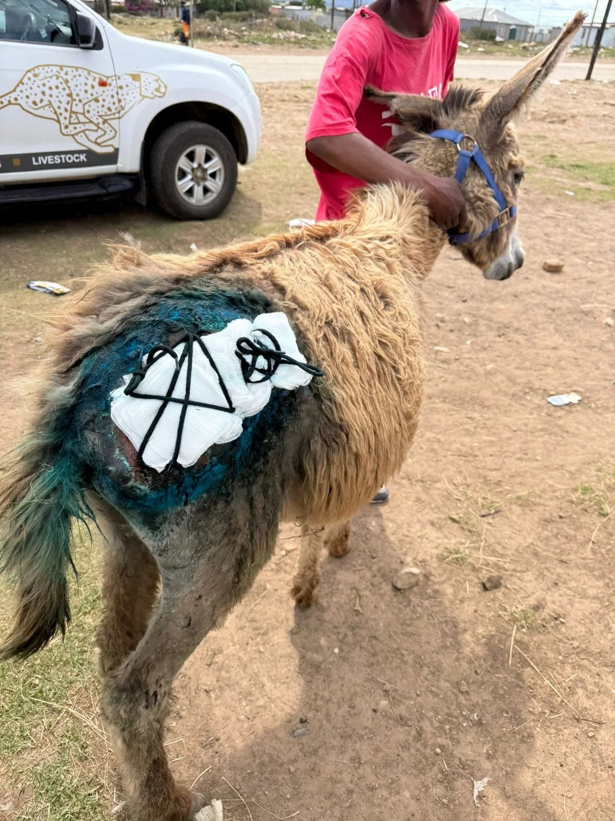 Early in December, we received a call from Michael about a donkey who had a serious injury at the base of her tail. Vet, Dr Annie, went out immediately to attend to the poor donkey. The laceration was deep and badly infected. Dr Annie removed the dead skin, cleaned it up and gave her long-acting antibiotics. She suspects someone slashed her with a panga knife.