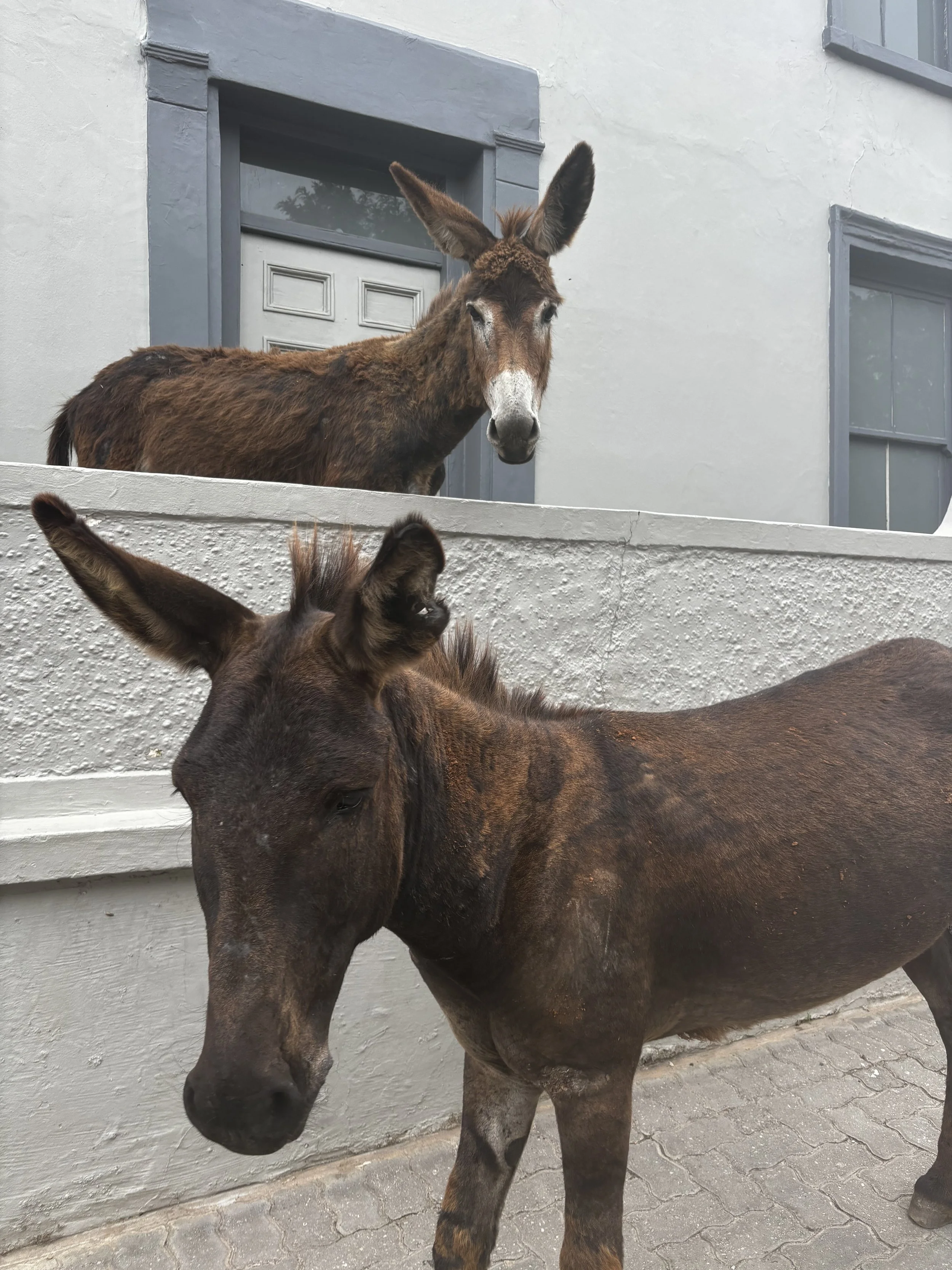 “There are donkeys on this street.”