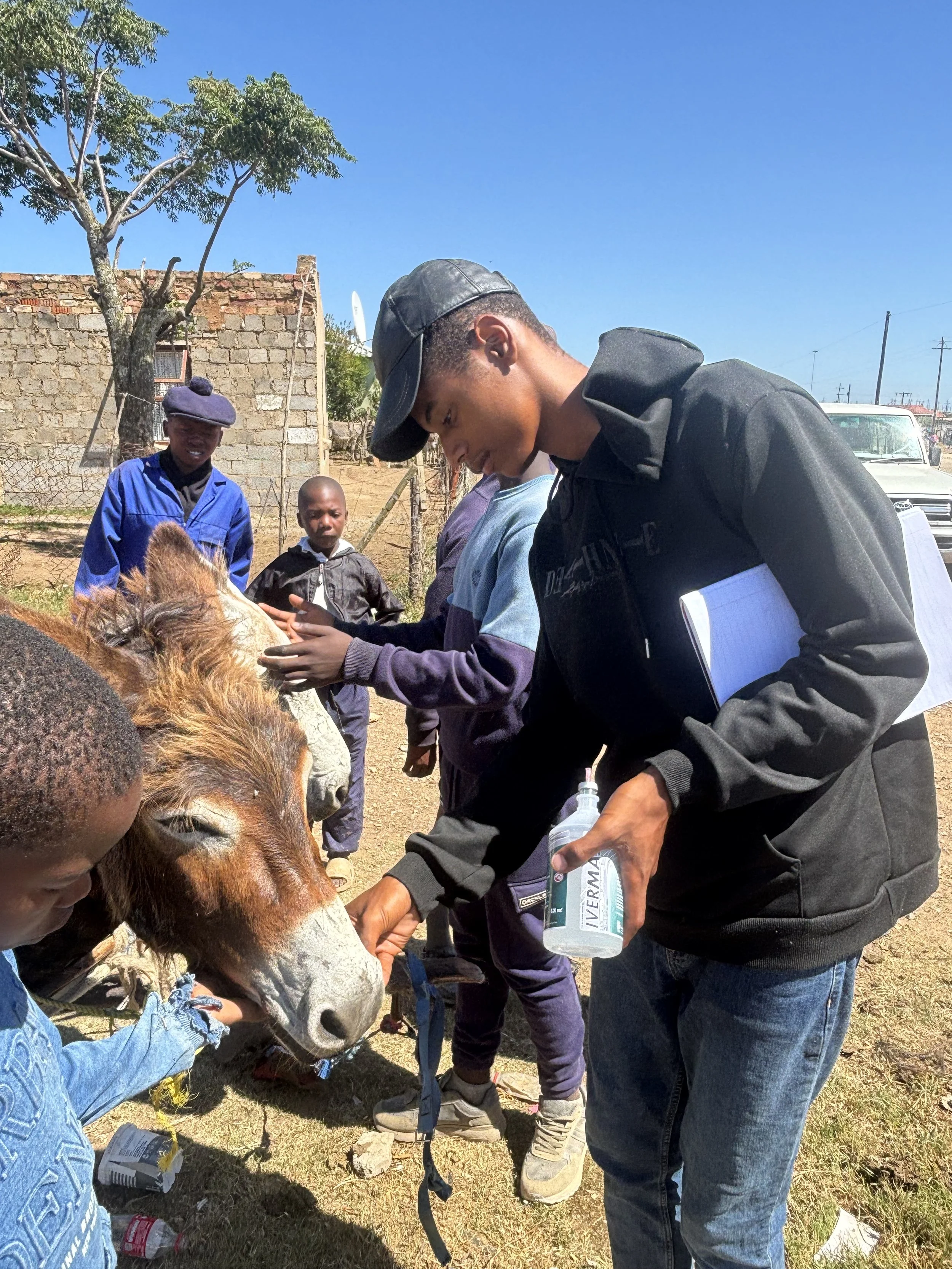 The Care Station is manned daily by Tshepang Khake and his brother, who ensure animals receive ongoing care, monitoring, and support between outreach visits.