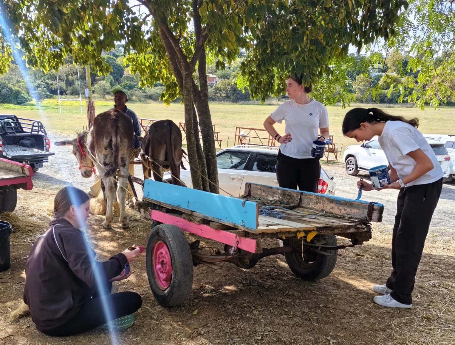 We had a farrier there who did a wonderful job trimming and cleaning out all the donkeys’ hooves. There was a team of carpenters too who were kept busy fixing carts. The school girls helped owners paint the carts in bright colours.