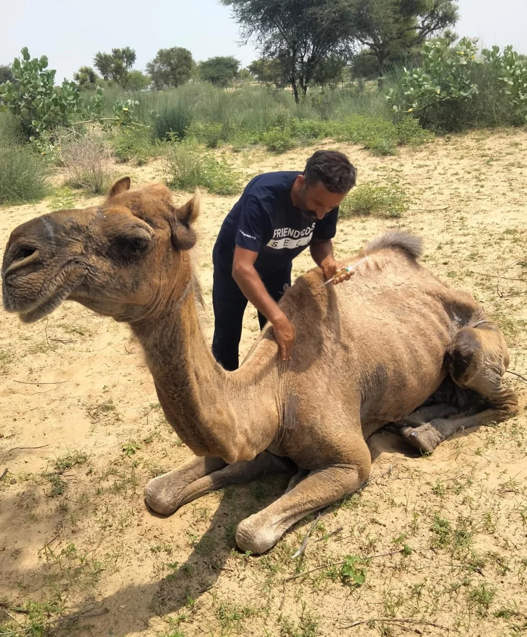 The sanctuary vet, Dr Akhilesh, is also completing a course in acupuncture for large and small animals, which will add to the treatments offered for the rescued camels.