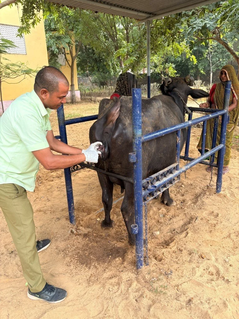 A woman called Meenakshi visited the CRC with her buffalo. The buffalo was suffering from a maggot wound on her genitals. The buffalo was very uncomfortable and was in pain when passing urine or faeces.