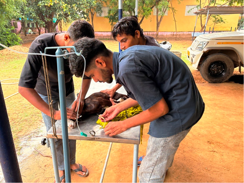 One day, Deepak came to the centre with his goat. He explained that his goat had not eaten for three days and had foul-smelling diarrhoea. After proper examination, the goat was administered fluid therapy along with other medications.
