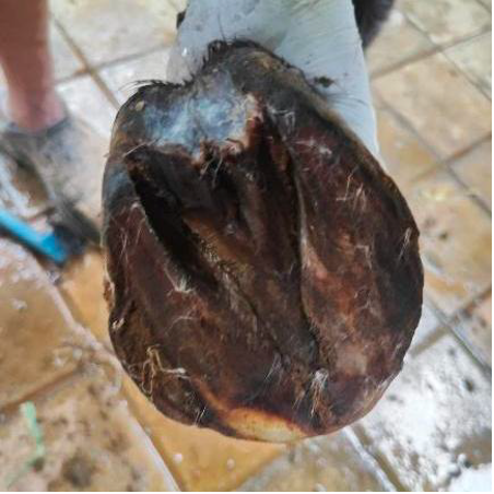 Special attention is given to hoof care - an essential part of equine health. Regular hoof cleaning, trimming and treatments are provided, especially for the ponies and donkeys. The images below show the improvements in hoof condition after intervention, ensuring mobility and comfort.