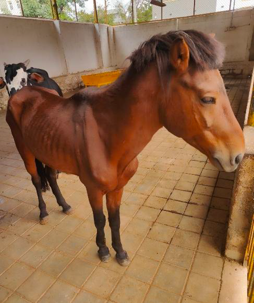 Treatment details: A pony called Asghar came to LARRC with recurrent lameness. On inspection, it was noticed that Asghar had recurring incidents of laminitis. He is now under constant medical care, and nutritional benefits have been added to aid in his recovery.