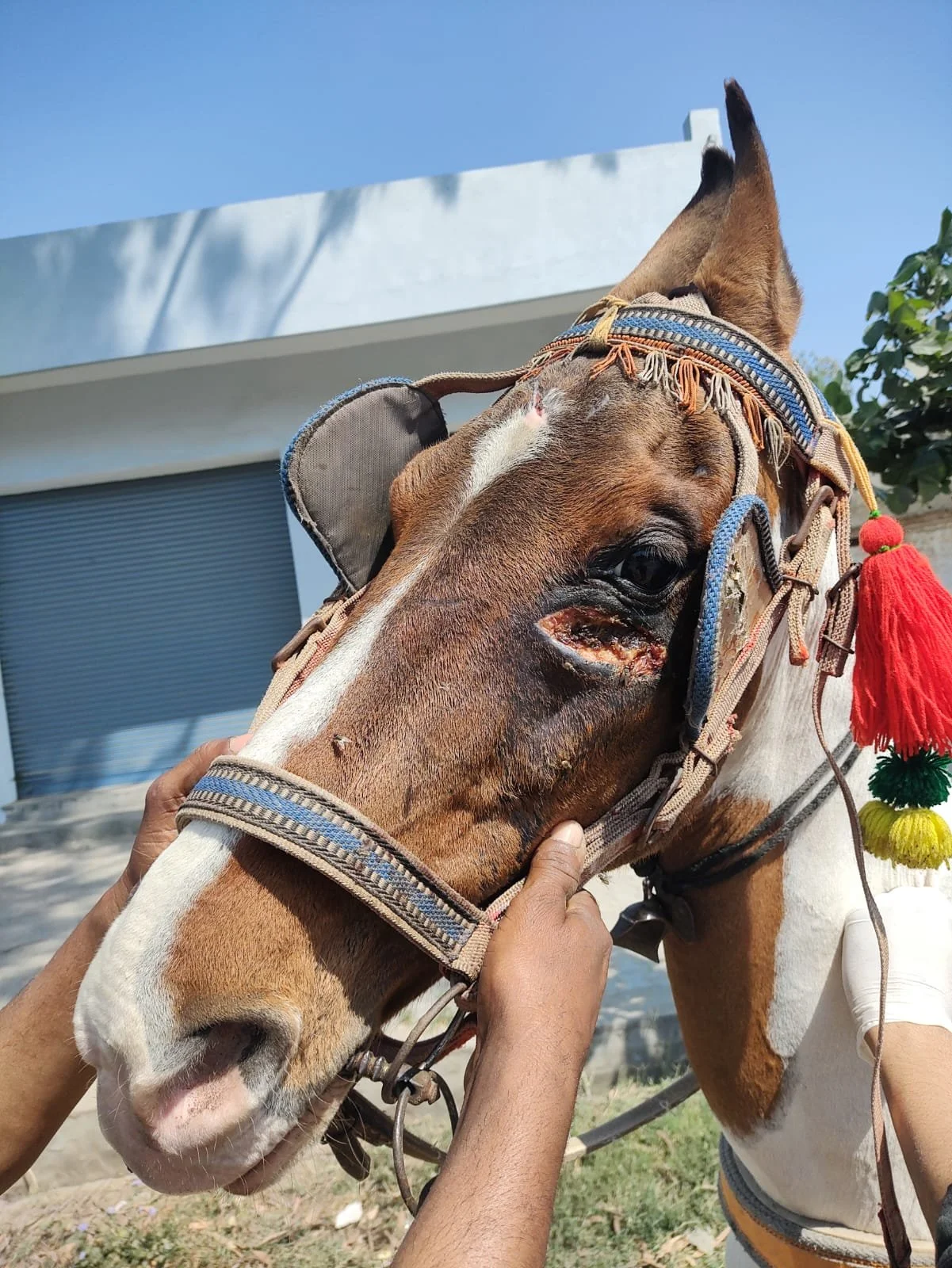 Horse from Loni: Abandoned roadside with an eye injury, now safe at the shelter.