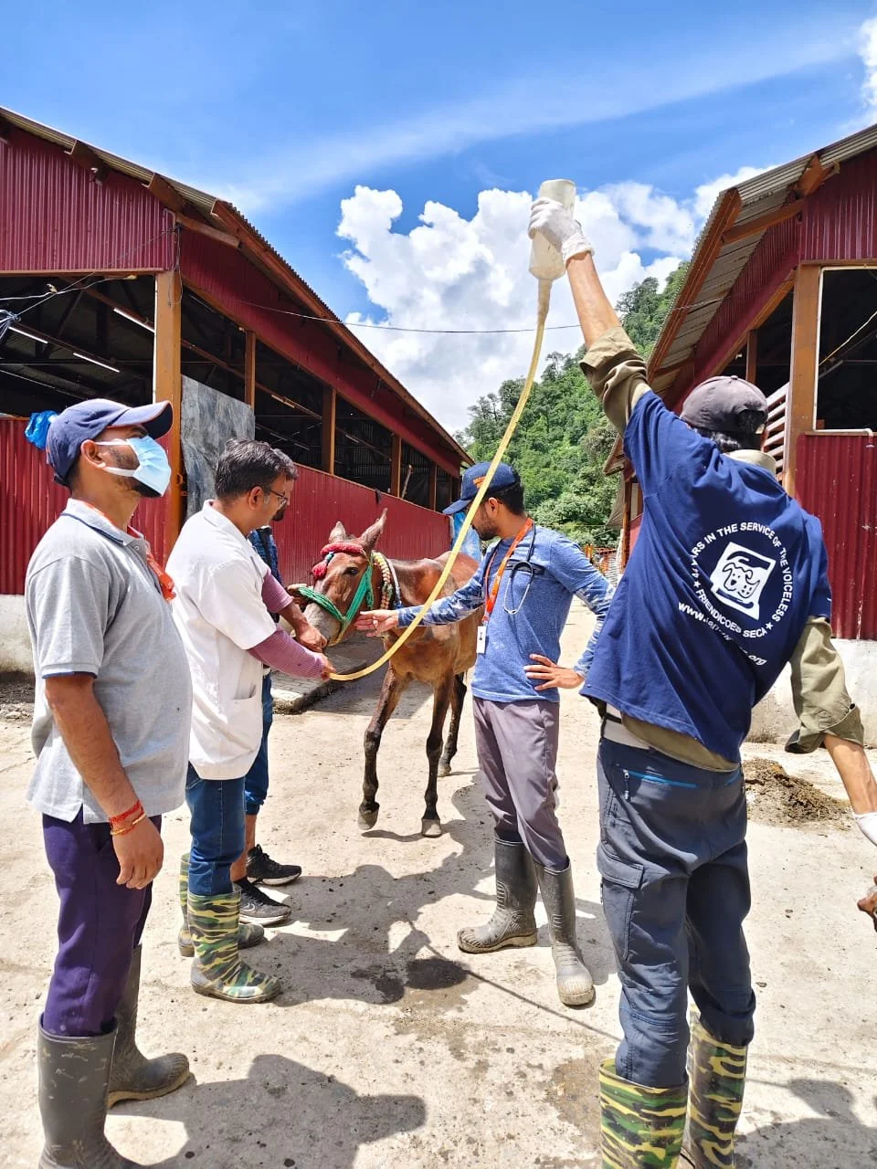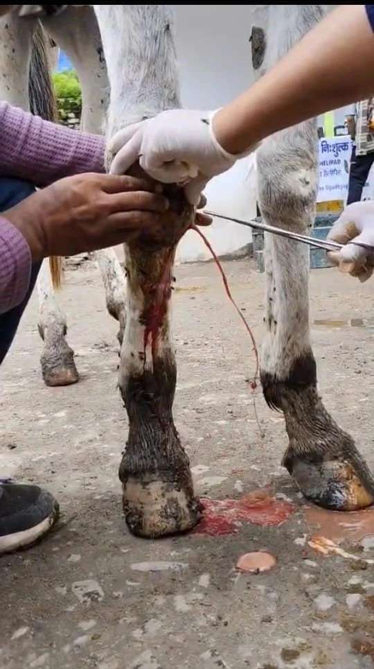 These are common injuries in working equines due to long-term saddle application and poorly-fitted equipment. The team cleaned these wounds with antiseptics and dressed them properly. The animals were also given painkillers and tetanus vaccines.