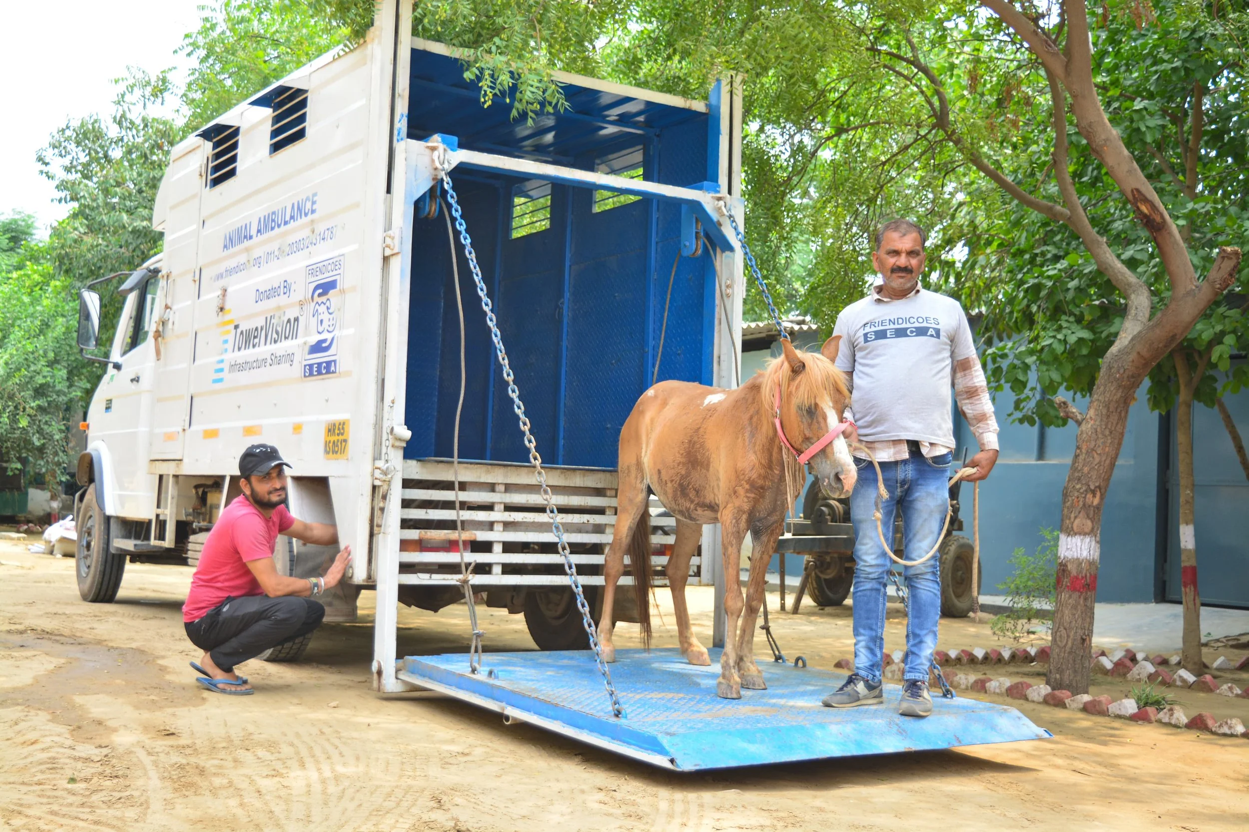 An elderly horse suffering from cellulitis was rescued from Palam Vihar and taken to Friendicoes’ shelter.