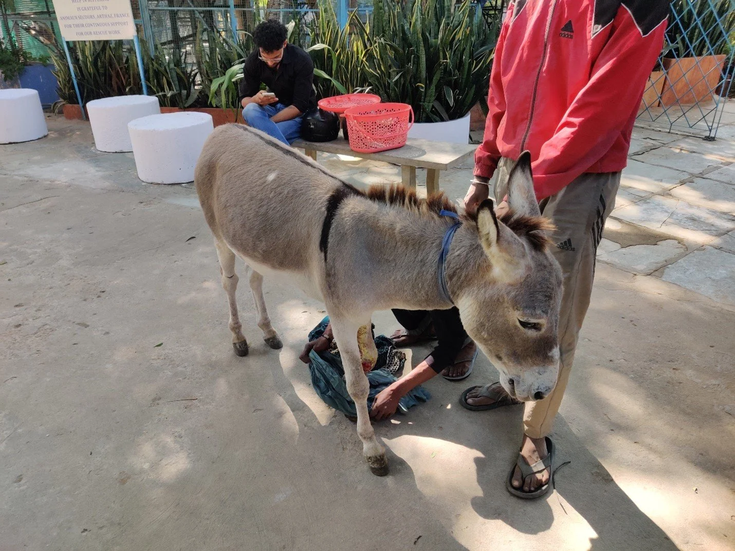 This donkey has a wound on her left forelimb and is currently under treatment at HIS.
