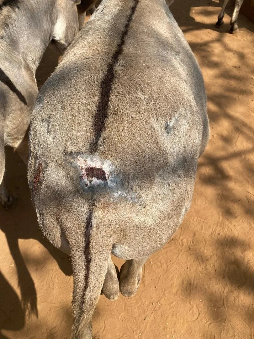 During our routine field visits in Magenge in early August, we encountered Matia - a gentle female donkey in a heartbreaking state of distress. We observed her body was marked with multiple cutaneous wounds; some old and neglected, others freshly inflicted by heavy harnessing and harsh whipping from her attendant. Witnessing such a noble soul forced to endure suffering while still labouring to sustain her owner’s family weighed heavily on our hearts.
