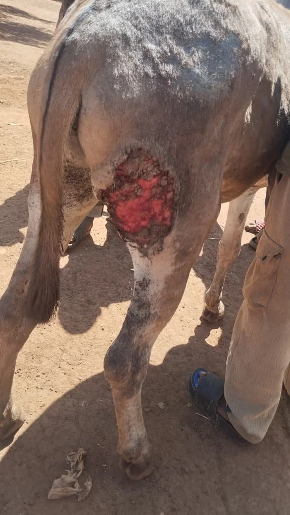 During the month, 399 donkeys were seen. Wounds, abscesses, and hematomas were commonly encountered, often resulting from blunt trauma or untreated injuries.