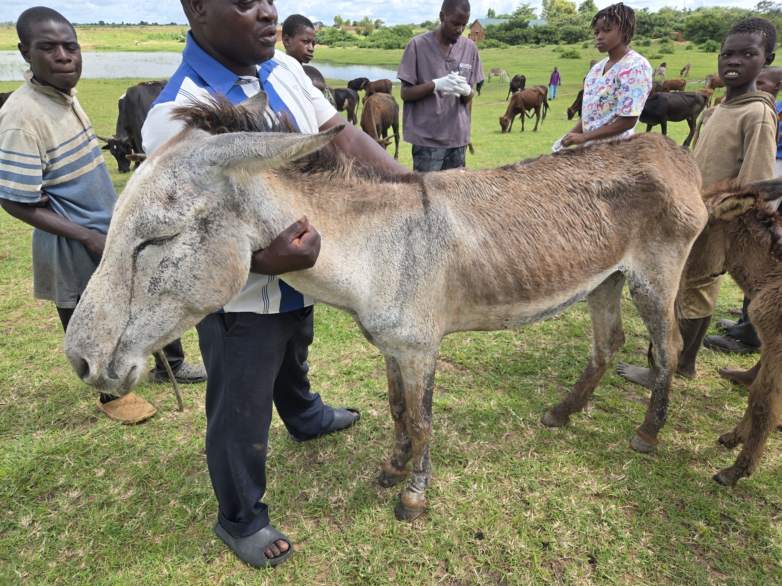Some donkeys presented with low body condition scores, largely attributable to residual nutritional deficits resulting from the recent prolonged drought. While the onset of the rainy season has improved pasture availability, a proportion of animals were still recovering due to previous feed scarcity.