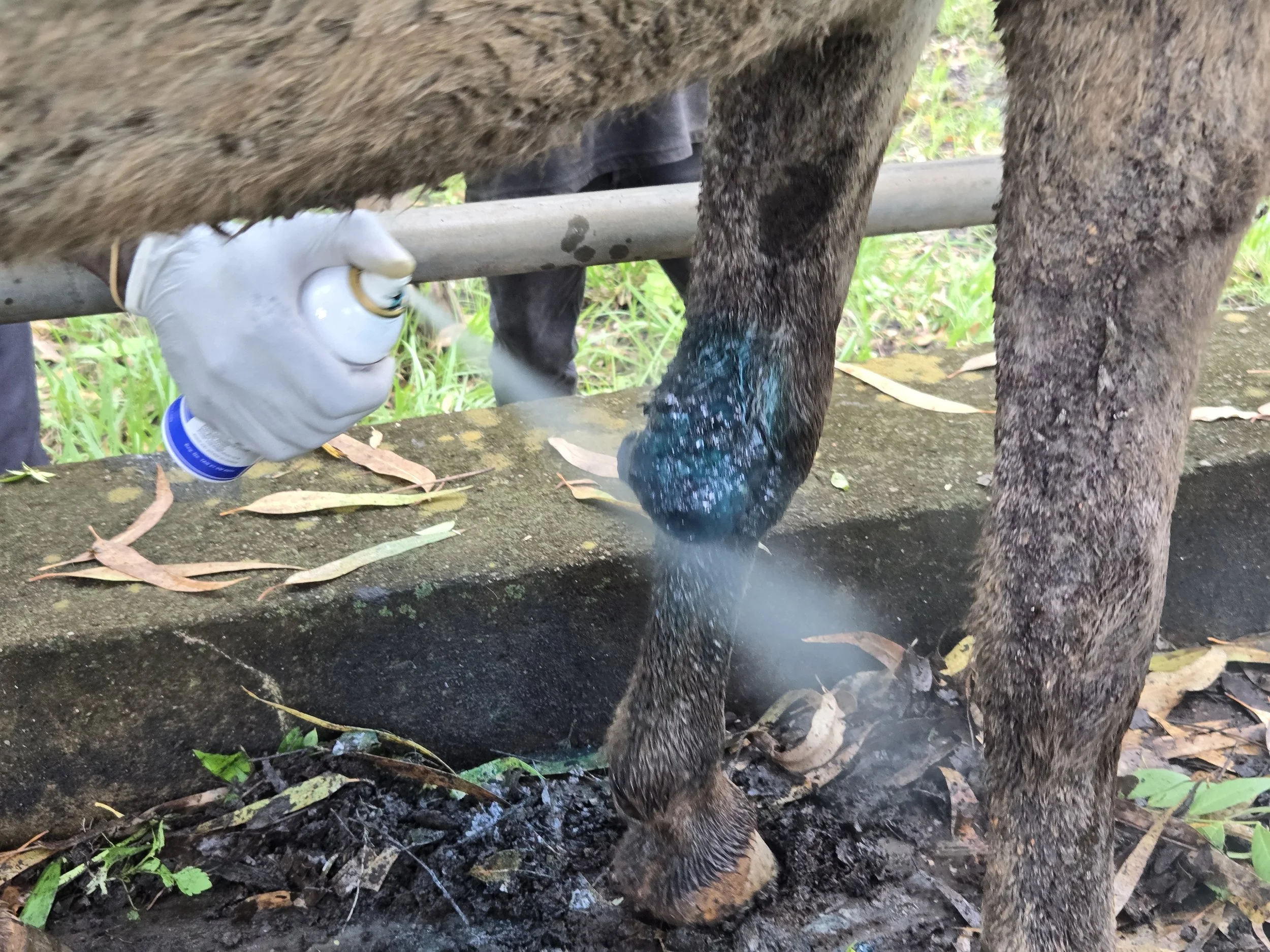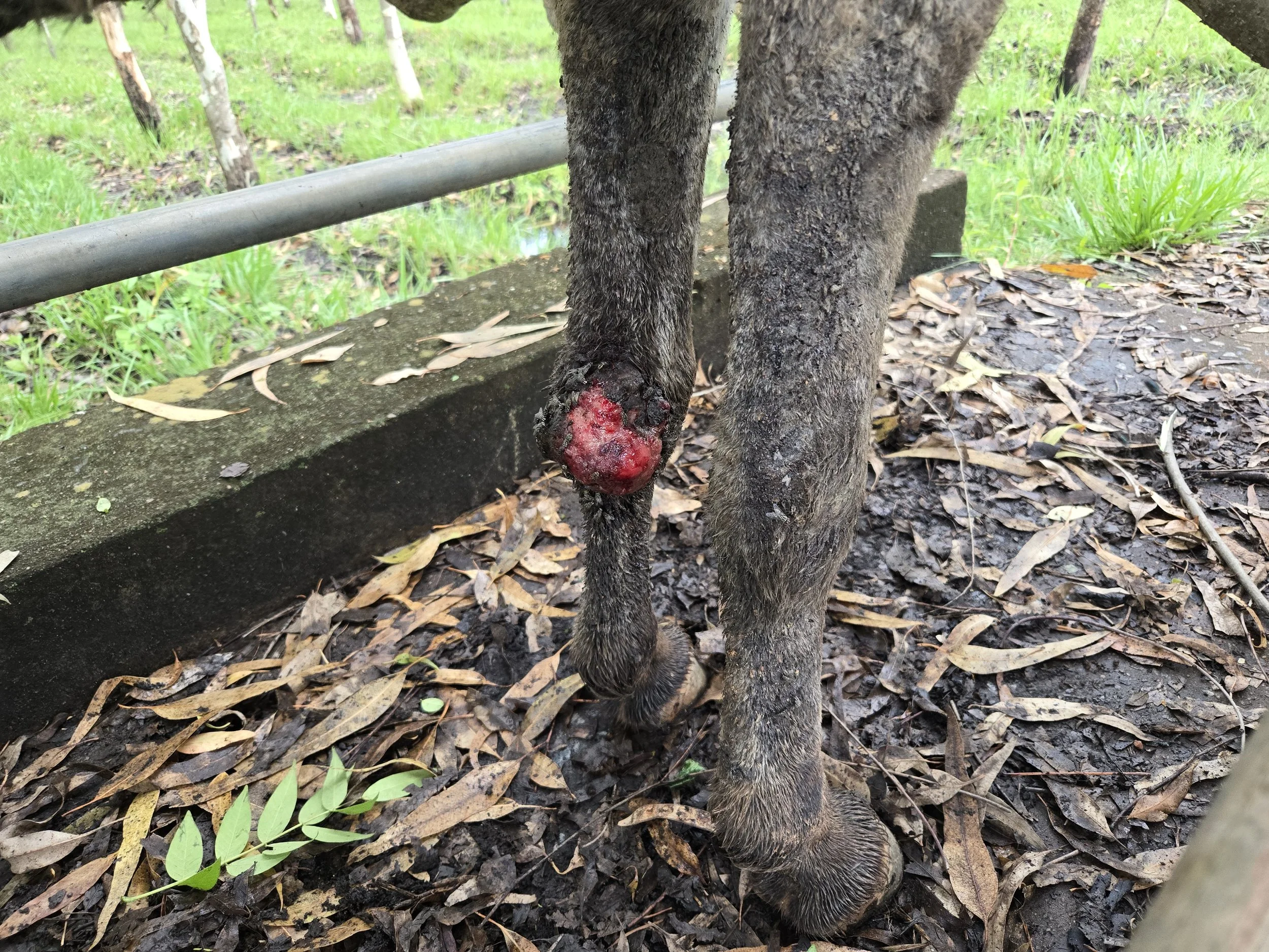 A donkey presented with a protruding limb mass, which the owners reported had been gradually enlarging over the past month. A clinical assessment was conducted during the mobile clinic, which revealed that the mass appeared progressive. The donkey showed signs of discomfort, frequently shifting weight and attempting to protect the affected limb. Pain relief was administered to improve comfort, and further management options were discussed with the owner. Based on the clinical findings, surgical removal was recommended to prevent further progression and reduce the risk of long-term impairment.