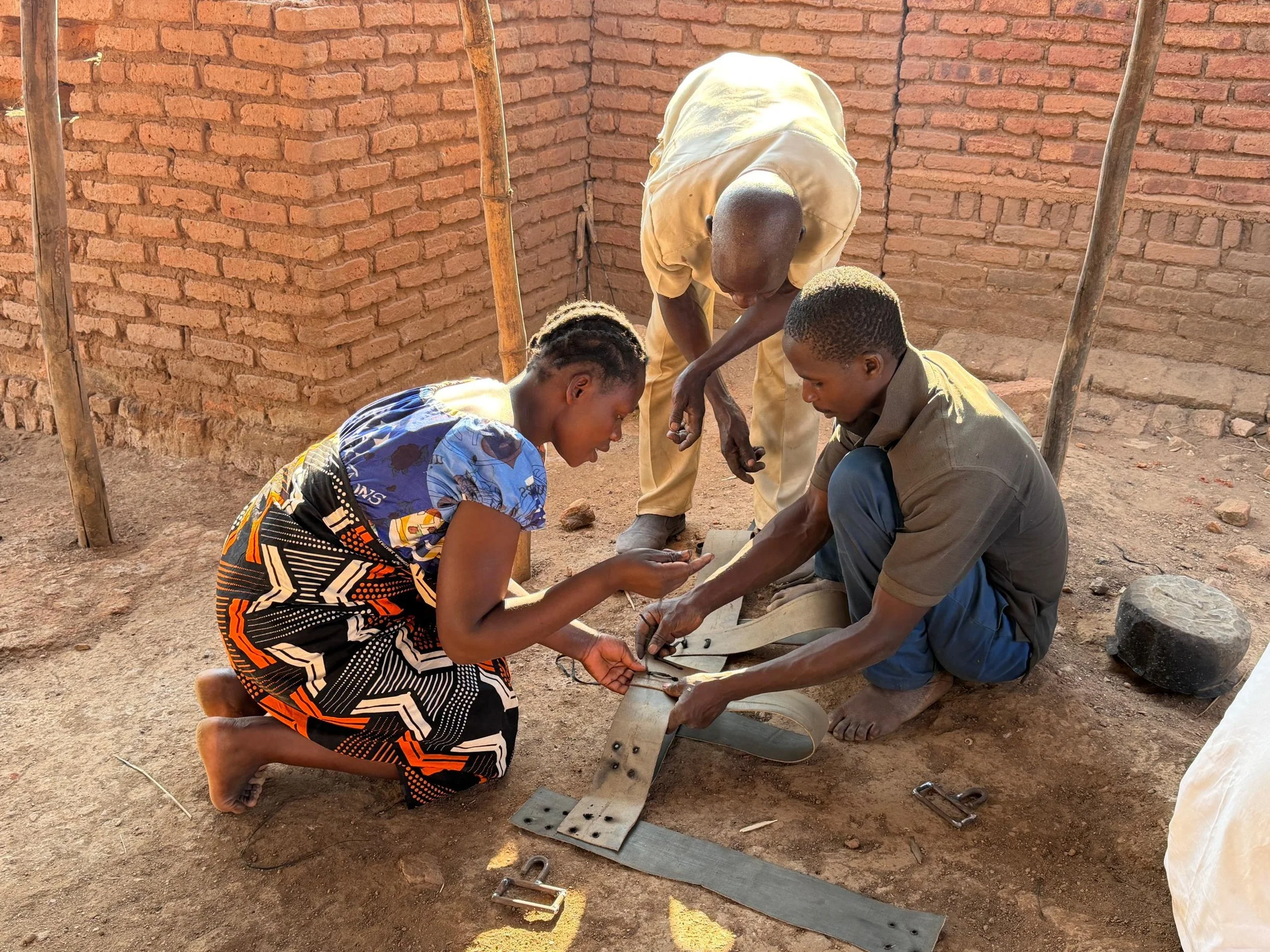 Farmers making their own harnesses with guidance from the LSPCA team.