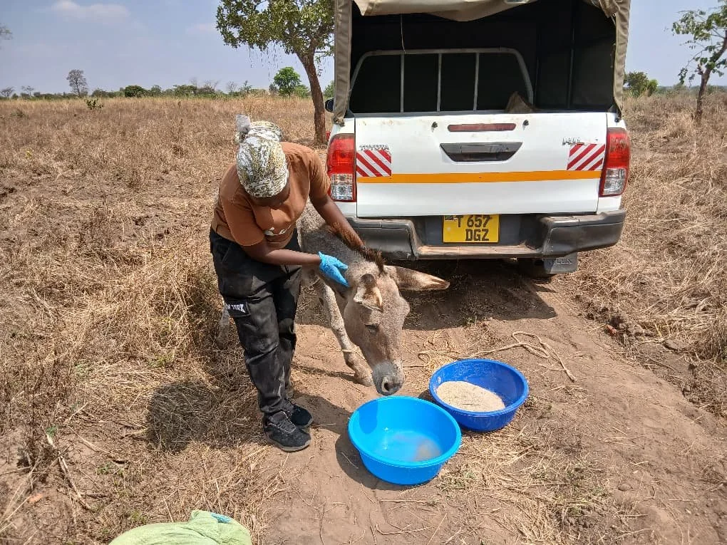 On August 13th, the Geita regional leadership called us after spotting a helpless donkey who had been deliberately abandoned beside the main road in the Geita Game Reserve. Moved by the animal’s suffering, they urgently appealed for our help and we responded without hesitation.