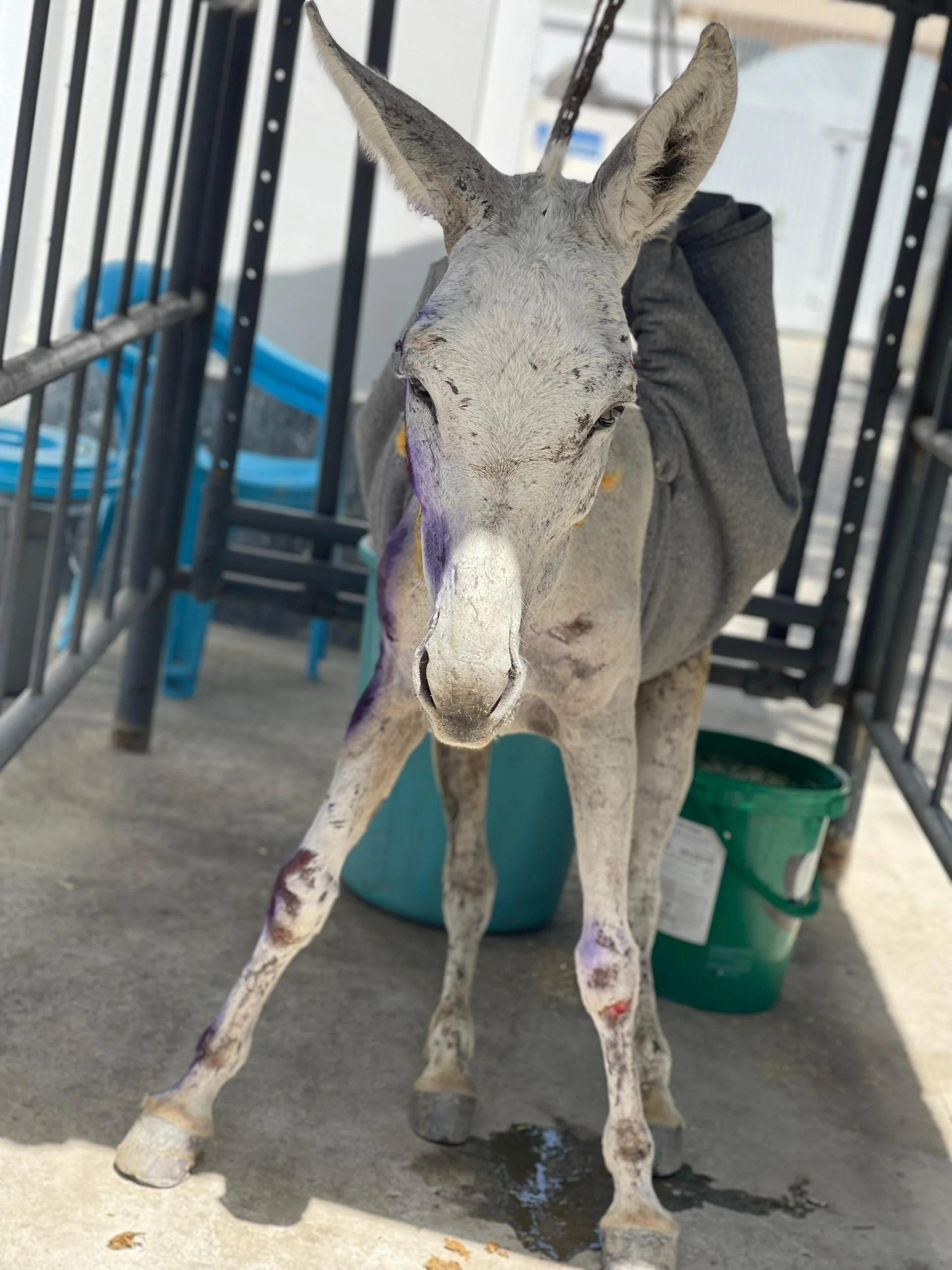 The other donkey was suffering from extensive, infected wounds caused by improper harnesses.