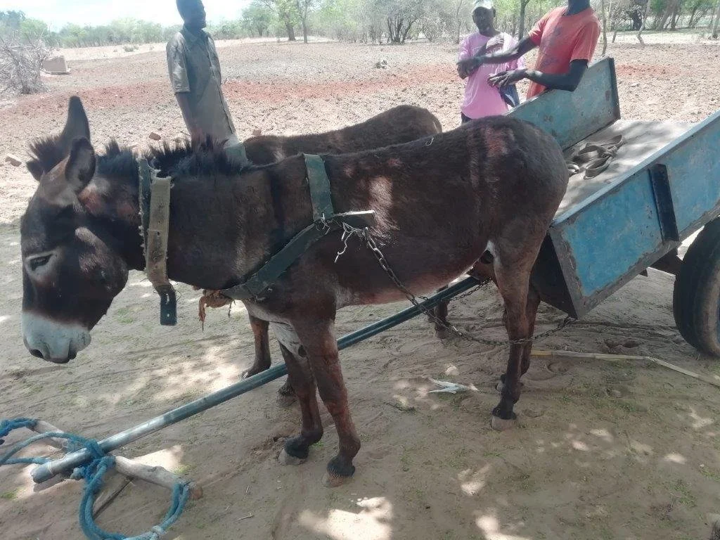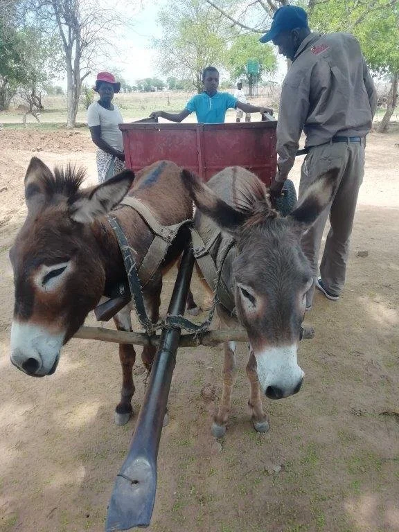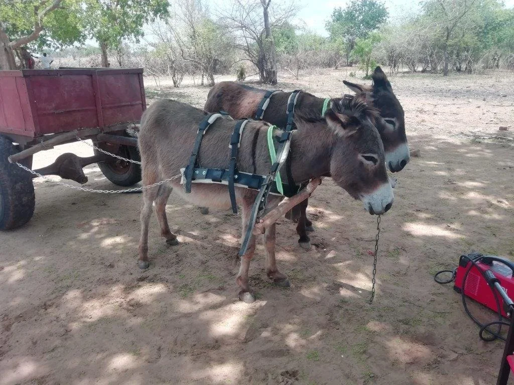 During November, the team also adapted or built 15 lighter carts, which lessens the load for working donkeys. Additionally, they provided 50 cart reflectors to help prevent road traffic accidents and keep both donkeys and their owners safe. One hundred and five reflective neck bands and bell straps were also given to working donkeys as additional safety measures and to protect them from hyena attacks.