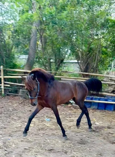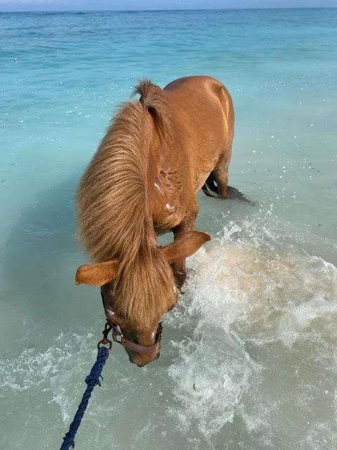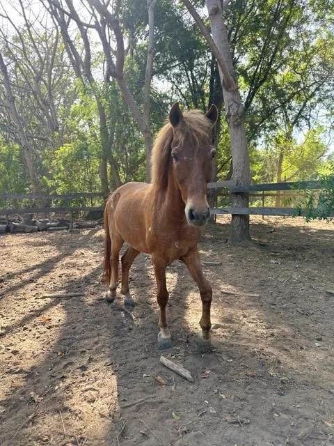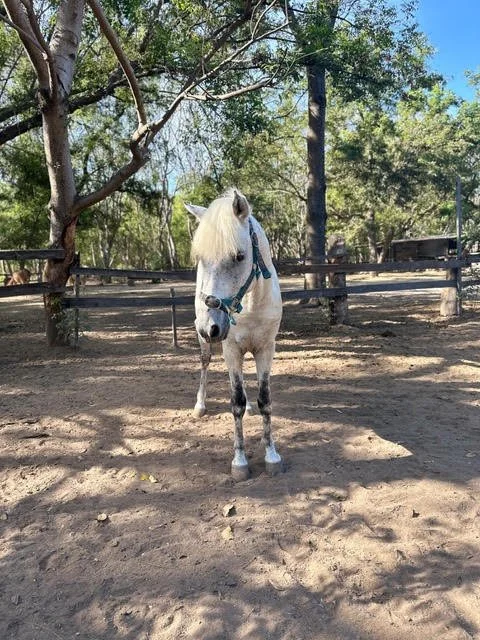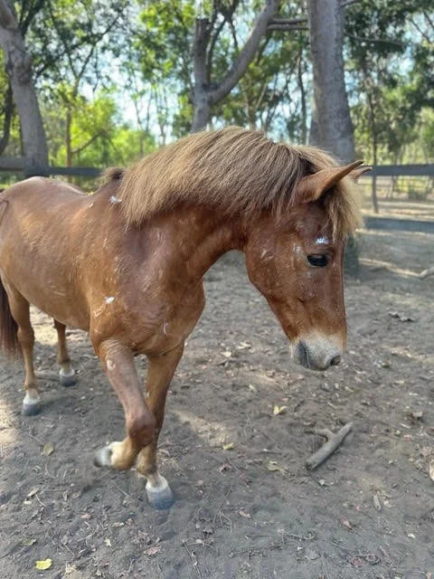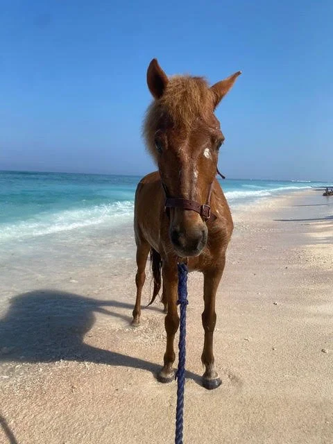 Mamba is a gentle, quiet soul who adores his daily grooms, a steady supply of carrots, and any attention he can get. In the paddock, he loves to play with his friends, though he somehow always ends up with a few scrapes and bruises from his adventures. Mamba’s ears never fail to prick up at the sight of the carrot bag, and he especially enjoys leisurely walks to the beach followed by a good roll in the sand.